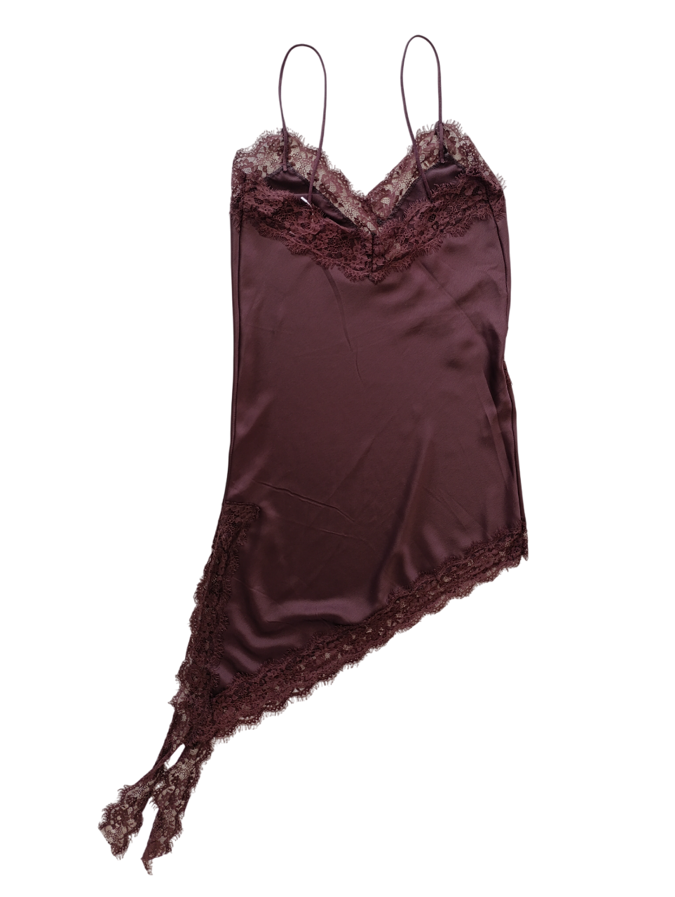 Un capo iconico dal fascino delicato. Realizzato in tessuto fluido con dettagli in pizzo, questo abito mood sottoveste presenta spalline sottili e un raffinato gioco di lunghezze. È impreziosito da un raffinato orlo in pizzo che si prolunga nella parte più lunga del vestito, scendendo lungo la gamba con eleganza. Perfetto da interpretare in mille modi: con tacchi per un look sofisticato o con anfibi e giacca in pelle per uno stile grintoso e moderno.