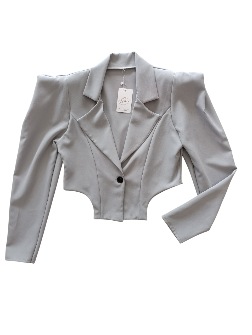 Un capo di tendenza dal taglio moderno e femminile. Questa giacca corta valorizza la silhouette grazie alla linea sfiancata e alla punta sul davanti che slancia la figura. Le spalline strutturate donano un tocco elegante e deciso, perfetto per completare look sia casual che raffinati.