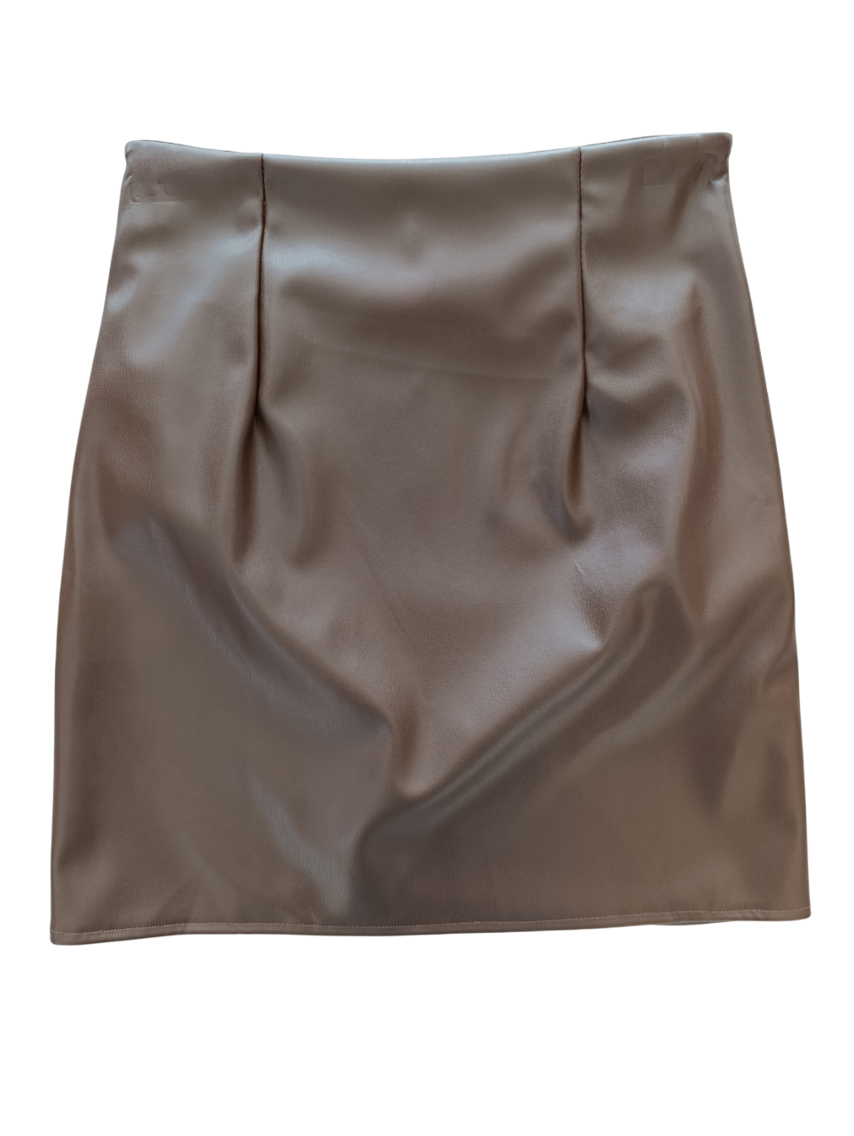 Un capo dal fascino contemporaneo e femminile, questa gonna in ecopelle combina dettagli sofisticati e vestibilità impeccabile. Il davanti intrecciato aggiunge carattere e stile, mentre il drappeggio laterale valorizza la silhouette con un effetto elegante e dinamico. Le pince sul retro assicurano una linea perfetta, e la chiusura con zip laterale garantisce praticità e comfort. Ideale per look serali o outfit urbani di tendenza.